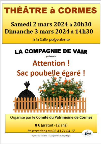 Le comité du Patrimoine de Cormes propose au public une pièce de théâtre présentée par La Compagnie de Vair: